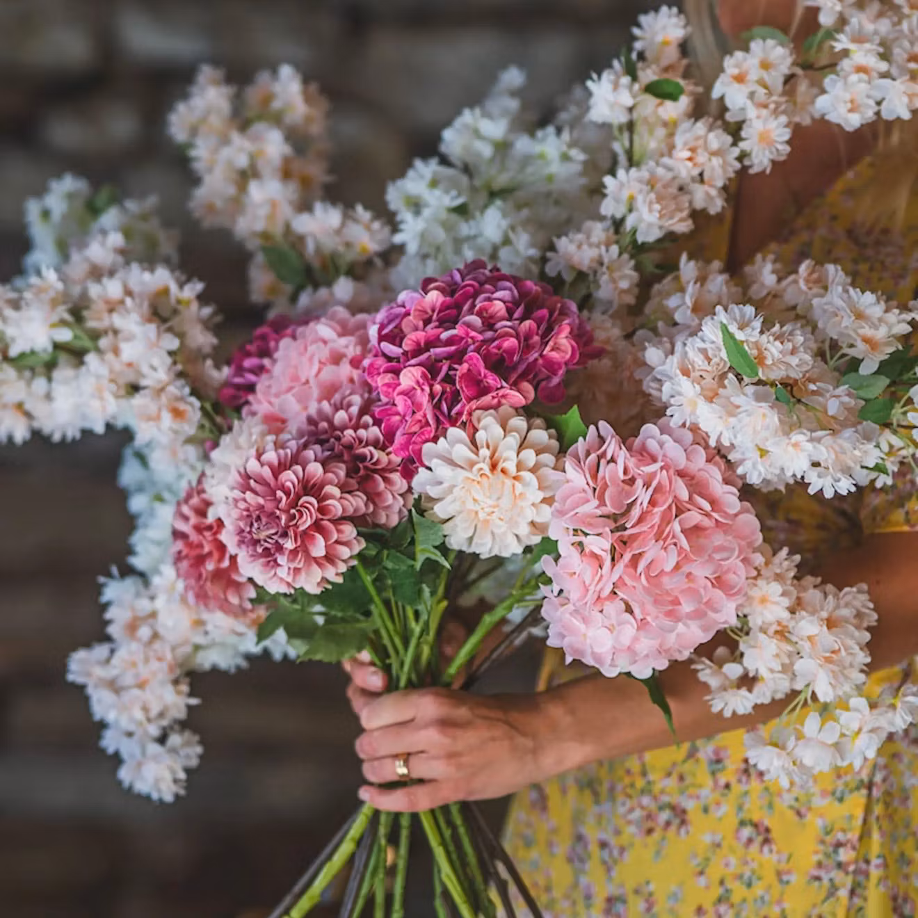 Denna konstgjorda dahlia blir en fin detalj i ett blomsterarrangemang eller bukett.