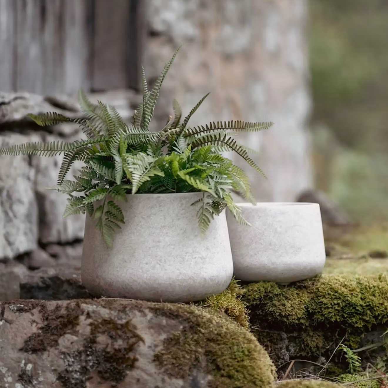 Detta set med krukor är tillverkat i fiberlera och blir ett fint tillskott i trädgården, på uteplatsen eller på balkongen. Krukorna är frosttåliga ner till -15 °C.