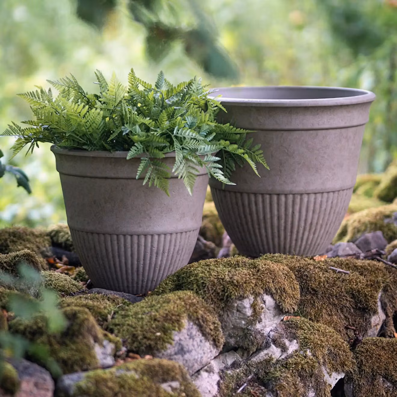 Sätt fram dina favoritväxter på uteplatsen i detta set med krukor.