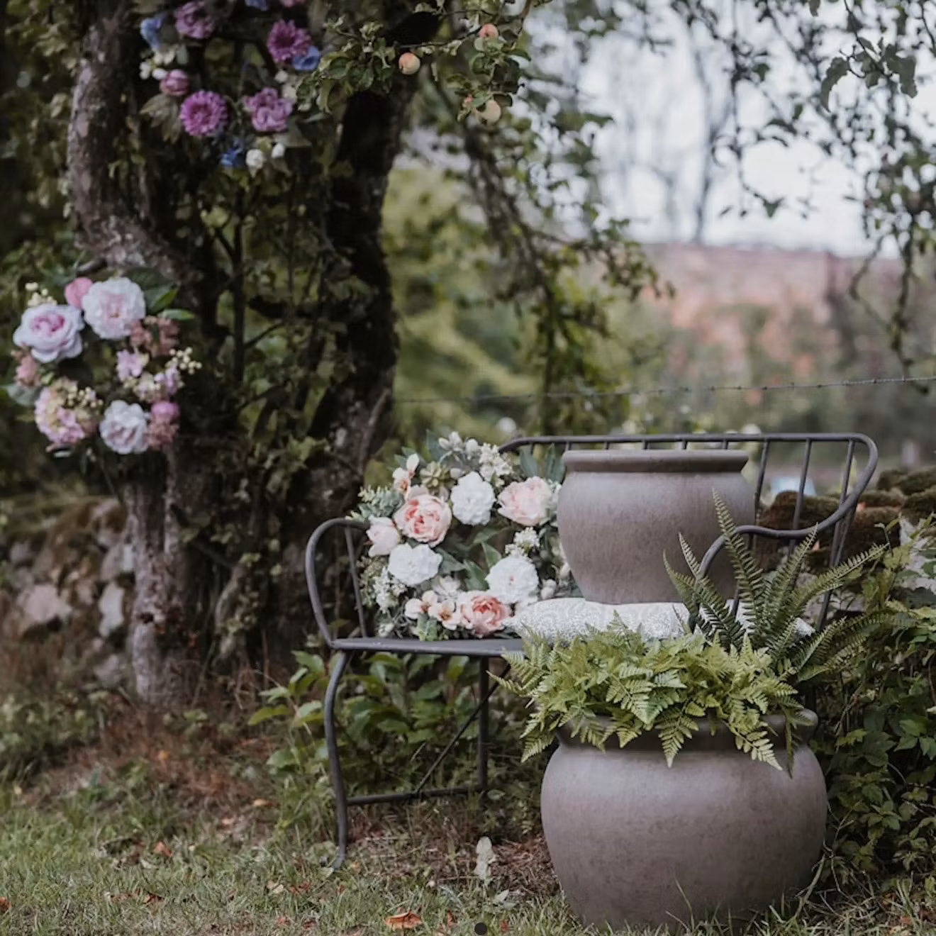 Uteplatsen eller trädgården blir ännu finare när du fyller detta set med krukor med växter och grönt.