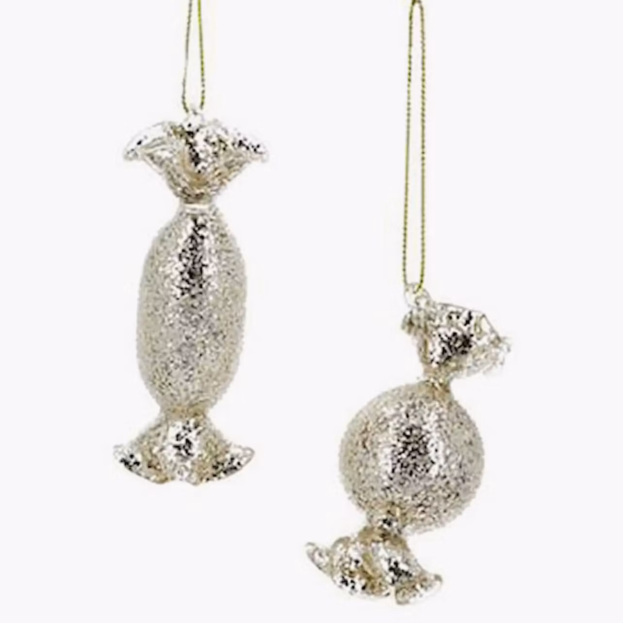 Klä julgranen eller dekorera ett blomsterarrangemang med en hängande dekoration som ser ut som karameller. Tillverkad av glas.