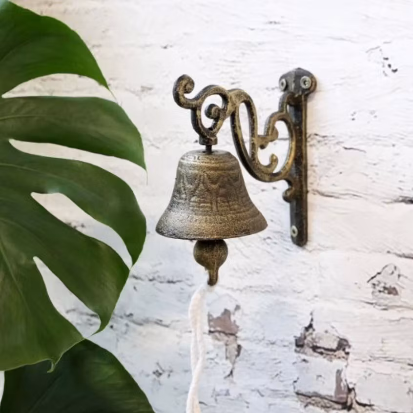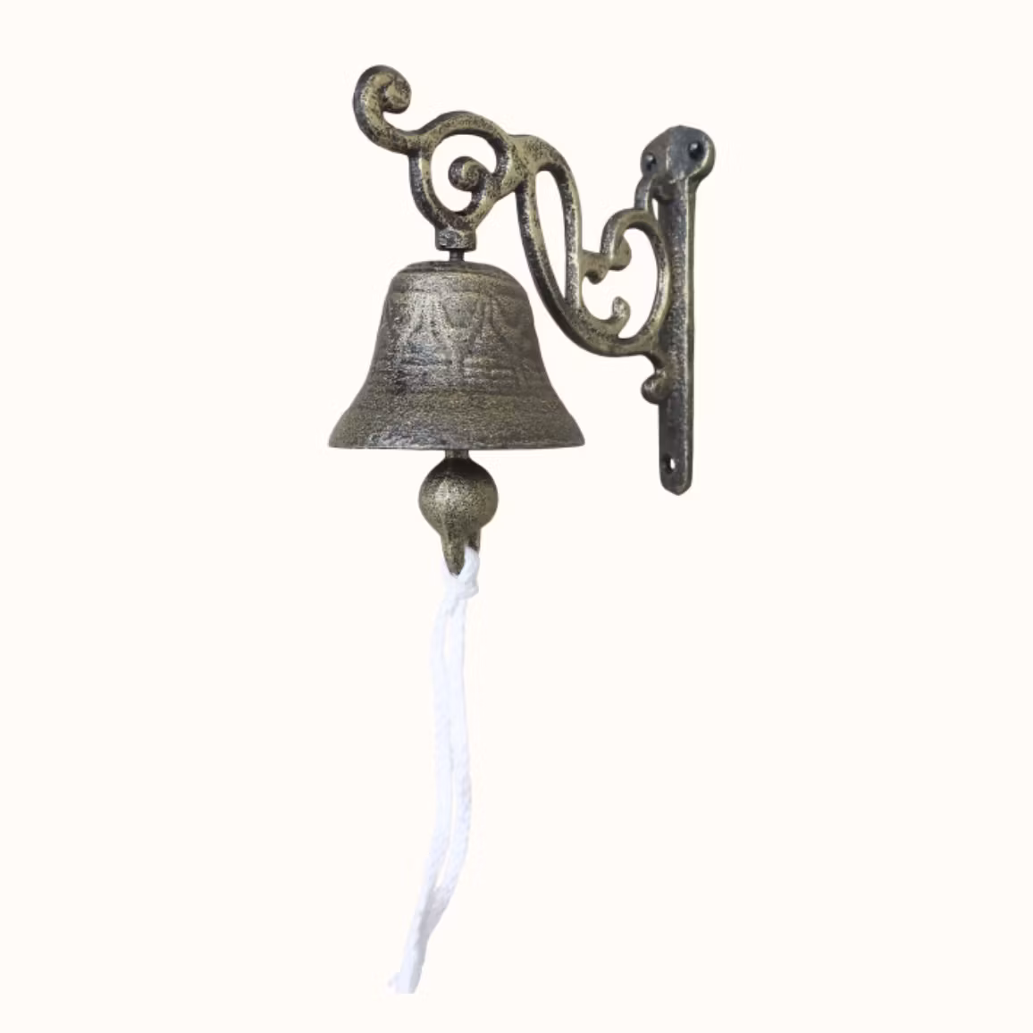 Gammaldags dörrklocka i antik guldfärgad gjutjärn