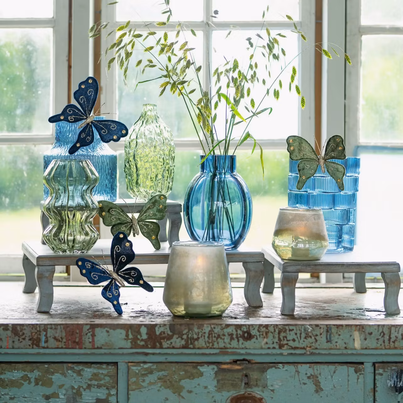 Set med tre små piedestalbord som är perfekta när du vill ställa fram dekorationer, ljus, växter och annat.