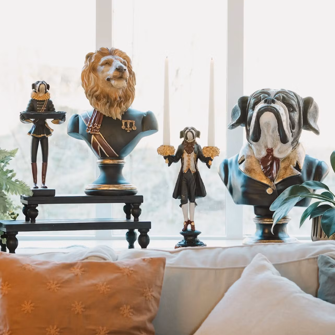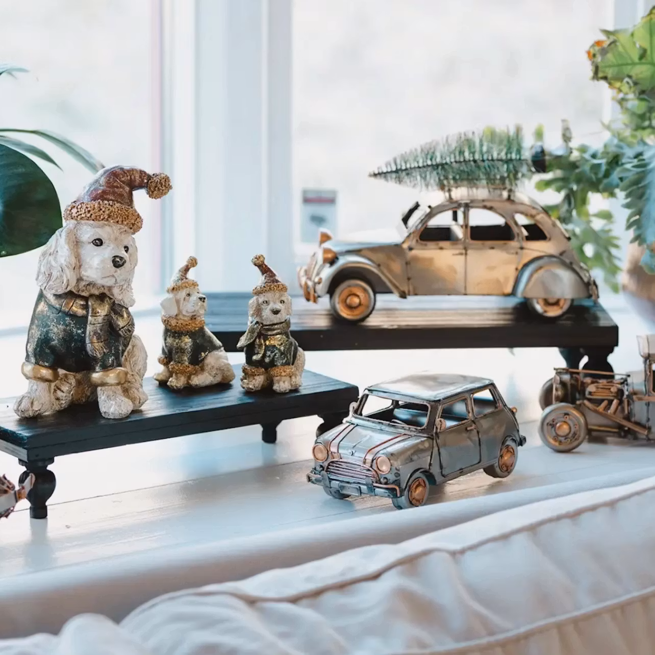 Ställ fram dekorationer, ljus, växter och annat på detta set med två små piedestalbord.