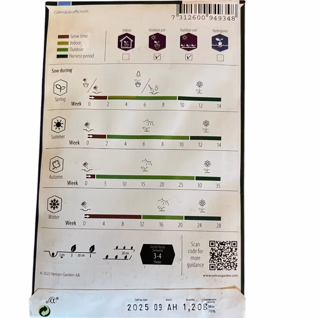 Ekologiskt frö. I krukor är ringblomma fullkomligt underbar. Denna blandning ger blommor i olika nyanser av gult, aprikost och orange. De vackra blombladen går att äta och är dekorativa i t.ex. sallader. Klipp bort vissna blommor efter hand, eller låt fröna utvecklas för frösådd. Plantan kan även myllas ner som gröngödsling på hösten