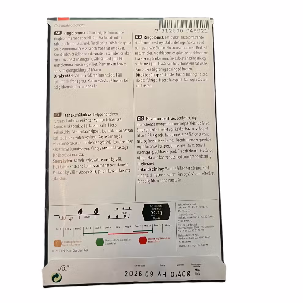 Ringblomma Bronzed Beauty 42 kr 32 kr Produkten är tyvärr slut i lager, men kan förbeställas Fröer för höst/vinter/vår sådd Nelson Garden Flera populära produkter Fjäderstjärnvinda Whithe Feather Nelson Garden Slutsåld Stjärnvadd Paper Moon Nelson Garden Slutsåld Kornvallmo Slutsåld Pense Rococo Slutsåld Prydnadspumpa Crowns of Thorns Slutsåld Ringblomma Slutsåld