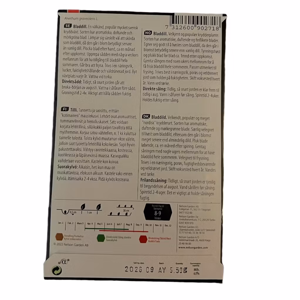 Dill,Blad- Bouquet 42 kr 32 kr Produkten är tyvärr slut i lager, men kan förbeställas Frö för höst/vinter/vår såddNelson Garden Flera populära produkter Palsternacka White Gem Slutsåld Rödbeta Moulin Rouge Rnud Slutsåld Tomat Kruka Balconi Red Slutsåld Tomat Hög Supersweet 100 Slutsåld Tomat Hög Agro Organic Slutsåld Basilika Grön Ordinary Slutsåld