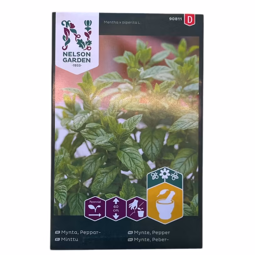 Lättodlad kryddväxt med starkt doftande, aromatiska blad. Man använder bladen, färska eller torkade till te, sallader, såser, sötsaker, drinkar m.m. Bladen doftar och smakar starkt av pepparmyntsolja. Vackert gröna blad och fina lilarosa blomspiror ger pepparmyntan ett dekorativt utseende. Anspråkslös och trivs på de flesta jordar även mager eller lerhaltig. Den sprider sig snabbt och lätt.