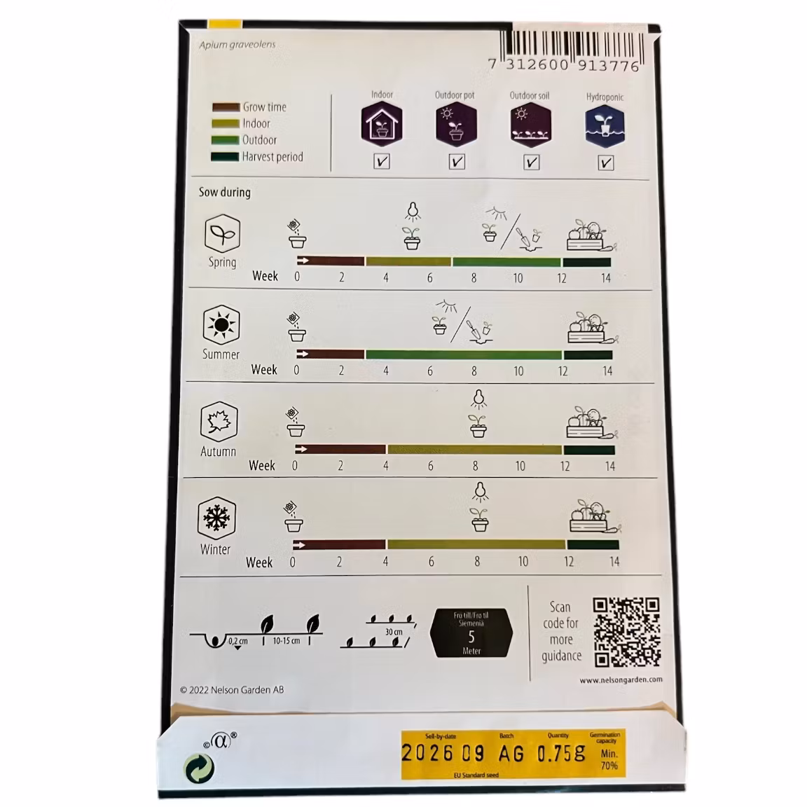 Sommarsådd (sv) | Förodla plantor under sommaren. Så glest i såjord. Sätt 1 planta/kruka i gödslad jord när de är stora nog att hantera. Plantera ut på friland eller behåll plantan i en kruka på uteplatsen. |