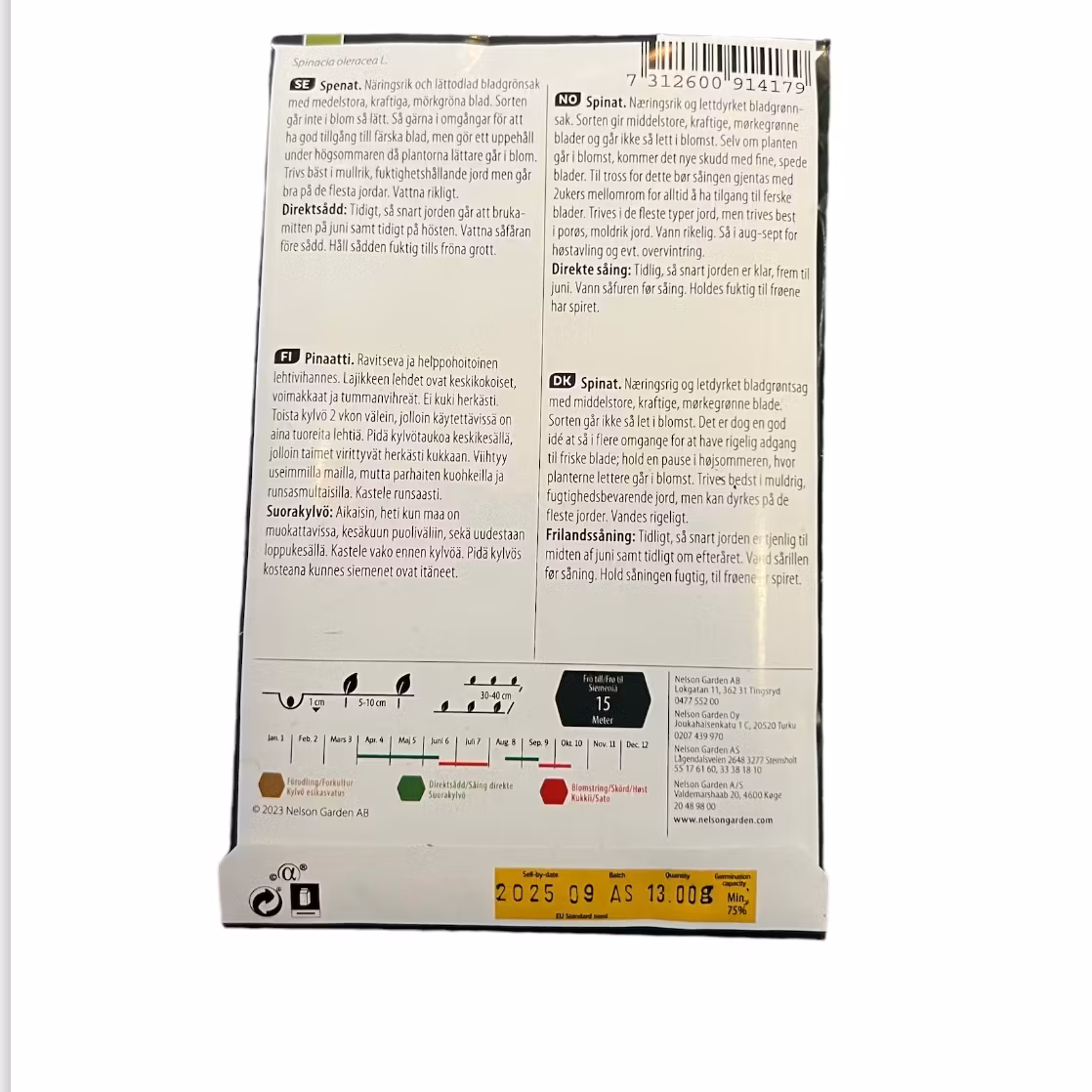 Spenat Nores 25 kr 19 kr Produkten är tyvärr slut i lager, men kan förbeställas Frö för höst/vinter/vår såddNelson Garden Flera populära produkter Sommarmorot Berlicum 2 Slutsåld Paprika Thor Slutsåld Tomat Hög Nagina Slutsåld Tomat Hög Coeur de Boeuf Slutsåld Tomat Kruka Funnyplums Red Slutsåld Tomat Kruka Balkonzauber Slutsåld