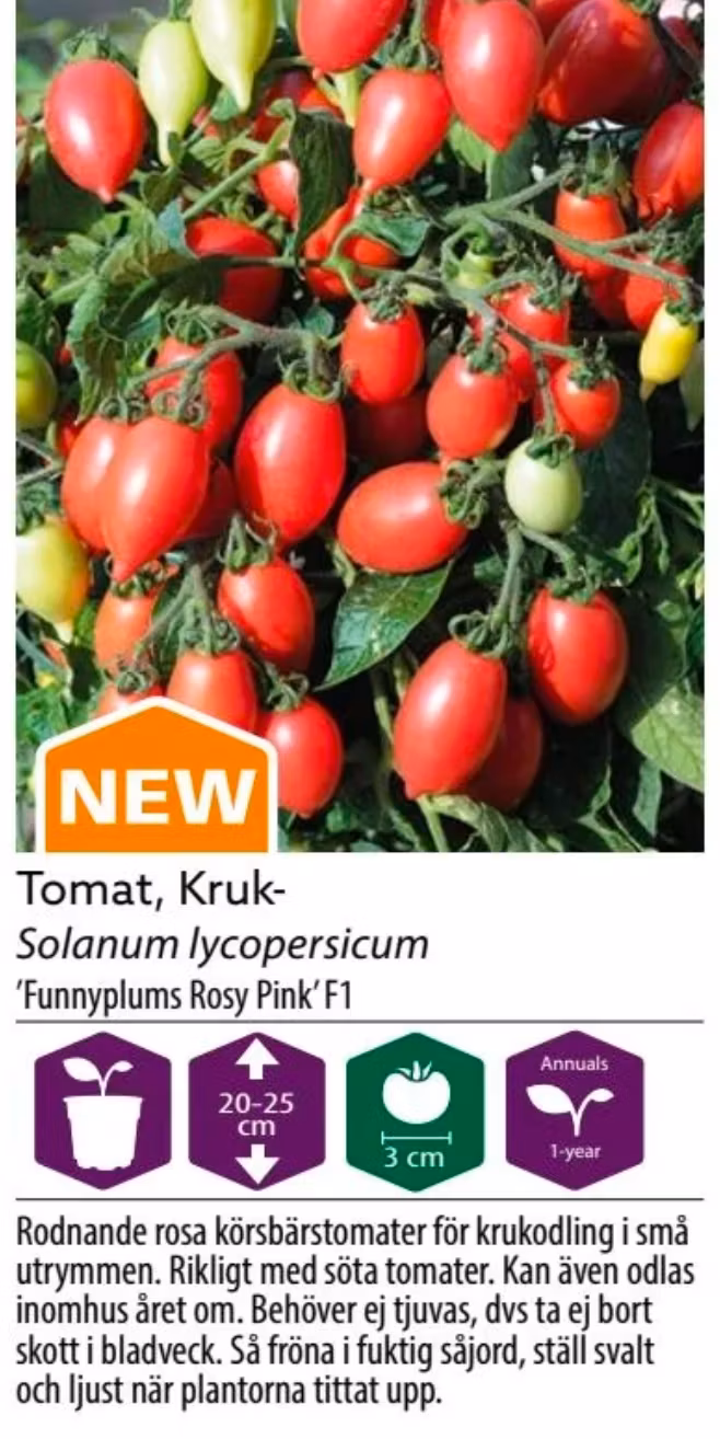 Tomat Kruka Funnyplums Rosy Pink F1 79 kr 59 kr Produkten är tyvärr slut i lager, men kan förbeställas Kruktomat som kan odlas året om F1Nelson Garden Flera populära produkter Kruktomat Tiny Tim Nelson Garden Slutsåld Purjolök Blaugruner Winter Nelson Garden Slutsåld Tomat Hög Golden Currant Organic Slutsåld Tomat Kruk Funnyplums Creamy Yellow F1 Slutsåld Tomat Hög Noire de Crimee Slutsåld Sallat Baby Leaf mix Slutsåld