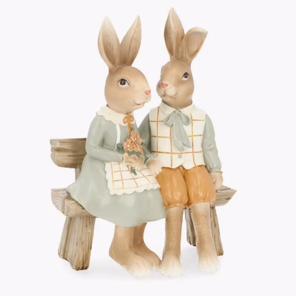 Sött kaninpar som sitter på en bänk. Perfekt som dekoration i fönstret eller på soffbordet.